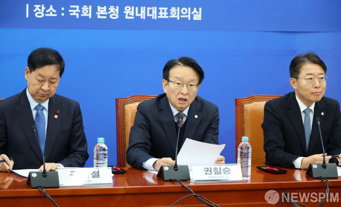 [서울=뉴스핌] 정일구 기자 = 권칠승 경제형벌민사책임 TF 단장이 30일 오전 서울 여의도 국회에서 열린 경제형벌 민사책임 합리화 제2차 당정협의에서 모두발언을 하고 있다. 2025.12.30 mironj19@newspim.com