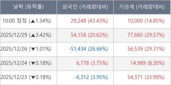 ※ 사모펀드 등 일부 기관의 순매매량은 표시되지 않음