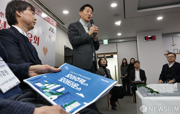 [서울=뉴스핌] 양윤모 기자 = 오세훈 서울시장이 30일 서울시청에서 개최된 '2025 도시주택 성과 공유회'에 참석해 환영사를 하고 있다. 2025.12.30 yym58@newspim.com