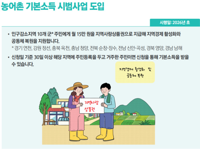 [2026 달라지는 것] 인구감소지역 10곳에 농어촌 기본소득 月15만원 지급