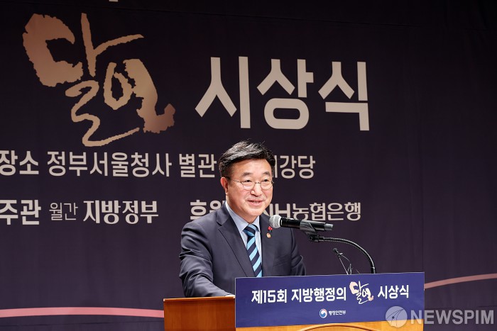 [서울=뉴스핌] 윤호중 행정안전부 장관이 31일 오후 서울시 종로구 정부서울청사에서 열린 제15회 지방행정의 달인 시상식에 참석하여 인사말을 하고 있다. [사진=행정안전부] 2025.12.31 photo@newspim.com