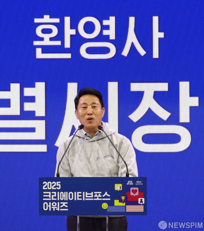 [서울=뉴스핌] 최지환 기자 = 오세훈 서울시장이 31일 오후 서울 중구 동대문디자인플라자에서 열린 2025 서울콘 크리에이티브포스 어워즈에서 환영사를 하고 있다. 2025.12.31 choipix16@newspim.com