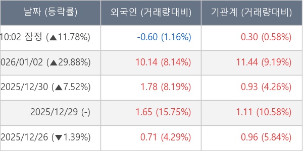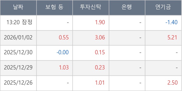 [표] 주요 기관별 순매매량 (단위 만주)