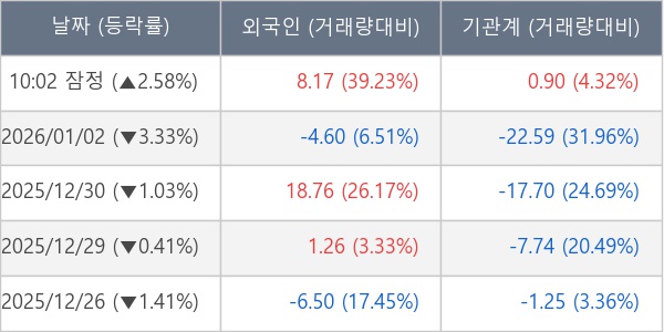 [표] 주요 기관별 순매매량 (단위 만주)