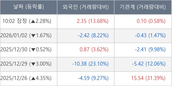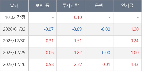 [표] 주요 기관별 순매매량 (단위 만주)