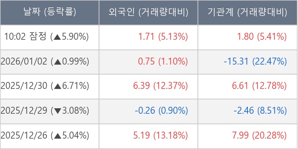 [장중수급포착] 브이엠, 외국인/기관 동시 순매수… 주가 +5.90%