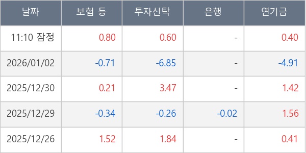 [표] 주요 기관별 순매매량 (단위 만주)
