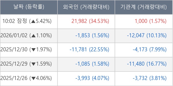 [표] 외국인ㆍ기관 순매매량 (단위 주)