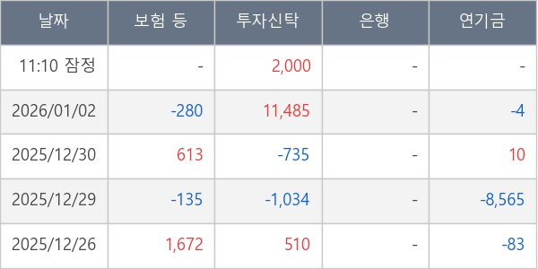 [표] 주요 기관별 순매매량 (단위 주)