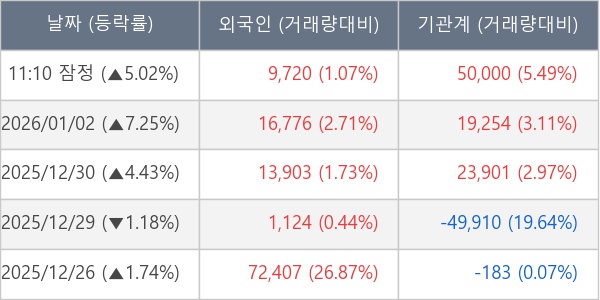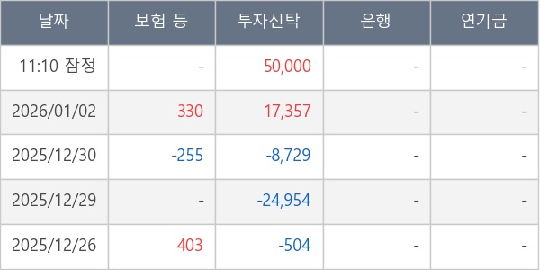 [표] 주요 기관별 순매매량 (단위 주)