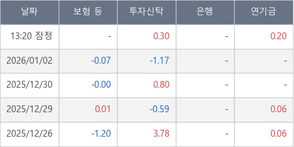 [표] 주요 기관별 순매매량 (단위 만주)