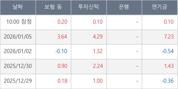 [표] 주요 기관별 순매매량 (단위 만주)