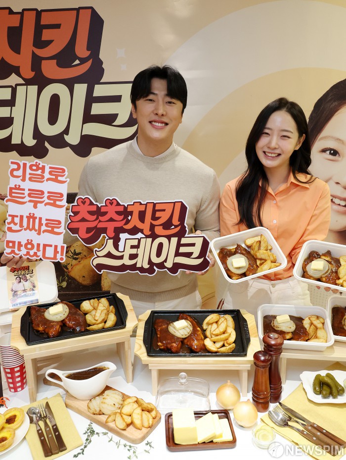 [서울=뉴스핌] 정일구 기자 = 6일 오전 서울 마포구 굽네 플레이타운에서 모델들이 굽네치킨 신제품 '추추 치킨 스테이크'를 소개하고 있다. '추추 치킨 스테이크'는 굽네의 오븐구이 기술력과 '소스 맛집' 노하우를 집약한 메뉴로 오븐에 구워 기름기는 줄이고 촉촉한 식감은 극대화했으며, 특제 스테이크 소스와 버터로 풍부한 감칠맛을 구현한 것이 특징이다. 2026.01.06 mironj19@newspim.com