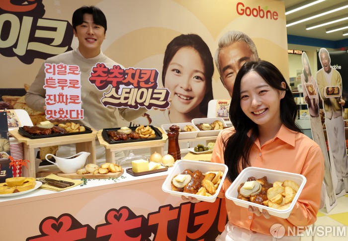 [서울=뉴스핌] 정일구 기자 = 6일 오전 서울 마포구 굽네 플레이타운에서 모델들이 굽네치킨 신제품 '추추 치킨 스테이크'를 소개하고 있다. '추추 치킨 스테이크'는 굽네의 오븐구이 기술력과 '소스 맛집' 노하우를 집약한 메뉴로 오븐에 구워 기름기는 줄이고 촉촉한 식감은 극대화했으며, 특제 스테이크 소스와 버터로 풍부한 감칠맛을 구현한 것이 특징이다. 2026.01.06 mironj19@newspim.com