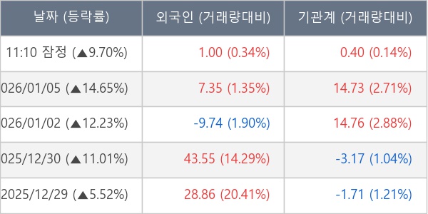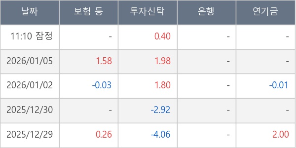 [표] 주요 기관별 순매매량 (단위 만주)
