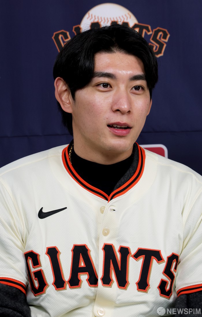 [서울=뉴스핌] 류기찬 기자 = 미국프로야구 메이저리그(MLB) 샌프란시스코 자이언츠의 이정후가 6일 오후 서울 종로구 클래식고택 디토에서 기자회견을 하고 있다. 2026.01.06 ryuchan0925@newspim.com