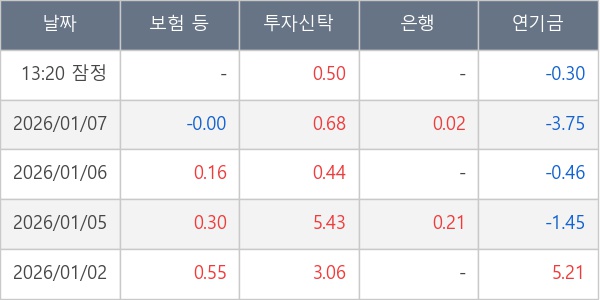 [표] 주요 기관별 순매매량 (단위 만주)