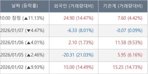[장중수급포착] 주성엔지니어링, 외국인/기관 동시 순매수… 주가 +11.13%