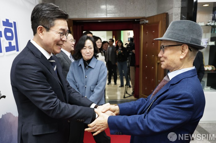 [서울=뉴스핌] 양윤모 기자 = 정원오 성동구청장이 8일 오후 서울 성동구 행당동 성동구청 대강당에서 개최된 '2026 성동구 신년인사회'에서 행사 참석자들과 인사를 하고 있다. 더불어민주당 서울시장 후보군으로 거론되는 정원오 성동구청장은 최근 서울의 주택 공급 부족 현상은 오세훈 서울시장으로부터 비롯됐다고 직격했다. 2026.01.08 yym58@newspim.com