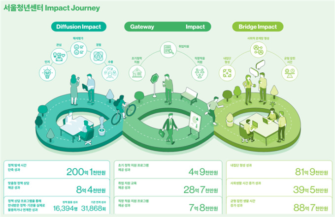 시는 이번 결과가 '청년에게 정책이 전달되는 시스템이 유효하게 작동하는지를 정량화한 전국 최초의 분석'이라는 점에서 의미가 크다며 지난 4년여간 서울청년센터 이용자가 대폭 늘면서 정책이 더 많은 청년에게 도달, 사회적 가치가 크게 나타났다고 설명했다.