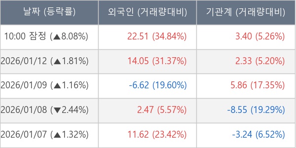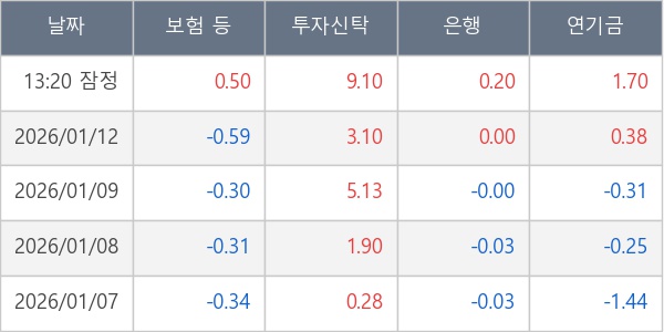 [표] 주요 기관별 순매매량 (단위 만주)