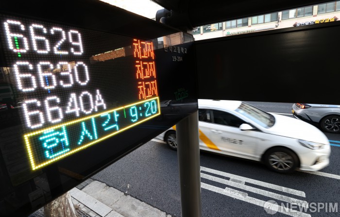[서울=뉴스핌] 정일구 기자 = 서울 시내버스 파업이 이틀째 이어진 14일 오전 서울 영등포구 양평동 인근 버스정류장 안내판에 버스 위치가 차고지로 나오고 있다. 2026.01.14 mironj19@newspim.com