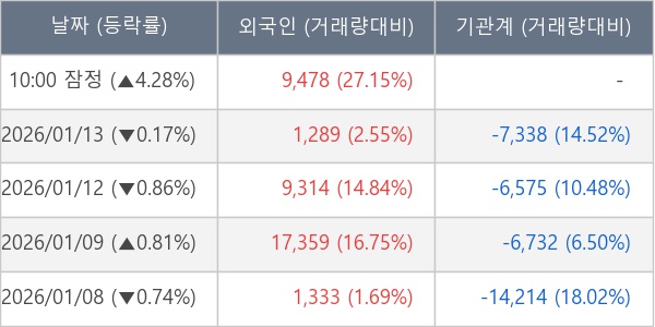 [표] 외국인ㆍ기관 순매매량 (단위 주)