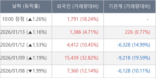 [장중수급포착] 롯데정밀화학, 외국인 8일 연속 순매수행진... 주가 +1.26%