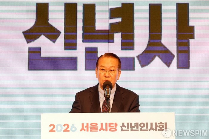 [서울=뉴스핌] 류기찬 기자 = 권영세 국민의힘 의원이 14일 오전 서울 여의도 중소기업중앙회 KBIZ홀에서 열린 2026 국민의힘 서울시당 신년인사회에서 신년사를 하고 있다. 2026.01.14 ryuchan0925@newspim.com