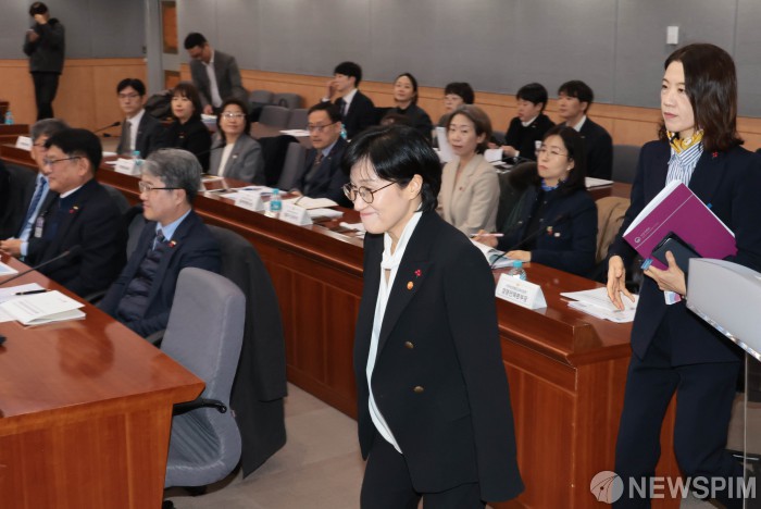 [서울=뉴스핌] 이길동 기자 = 원민경 성평등가족부 장관이 14일 서울 종로구 정부서울청사에서 열린 성평등가족부 산하기관 업무보고에 참석하고 있다. 2026.01.14 gdlee@newspim.com
