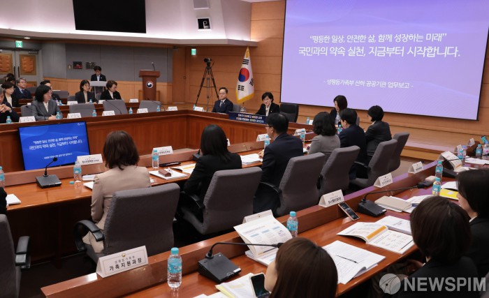 [서울=뉴스핌] 이길동 기자 = 원민경 성평등가족부 장관이 14일 서울 종로구 정부서울청사에서 열린 성평등가족부 산하기관 업무보고에서 모두 발언을 하고 있다. 2026.01.14 gdlee@newspim.com