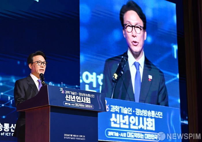 [서울=뉴스핌] 정일구 기자 = 김민석 국무총리가 14일 오후 서울 강남구 한국과학기술회관에서 열린 2026 과학기술인·정보방송통신인 신년인사회에서 인사말을 하고 있다. 2026.01.14 mironj19@newspim.com