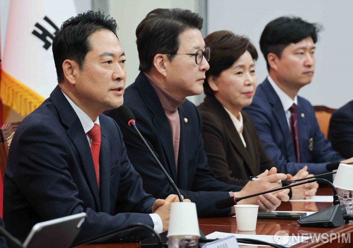 [서울=뉴스핌] 윤창빈 기자 = 장동혁 국민의힘 대표가 서울 여의도 국회에서 열린 최고위원회의에서 모두발언을 하고 있다. 2026.01.15 pangbin@newspim.com