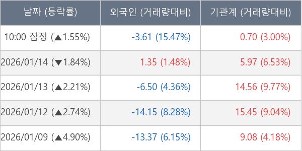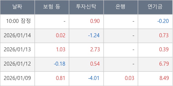 [표] 주요 기관별 순매매량 (단위 만주)