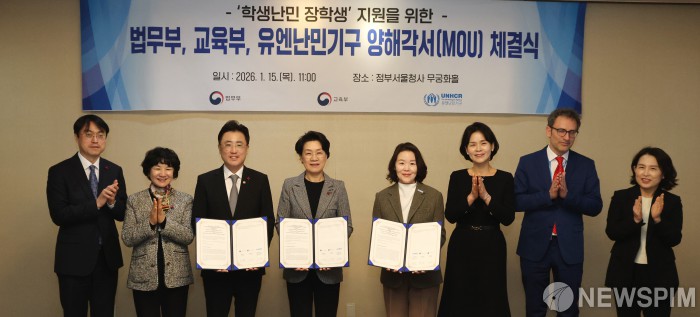학생난민 장학생 지원 위한 법무부-교육부-유엔난민기구 양해각서 체결