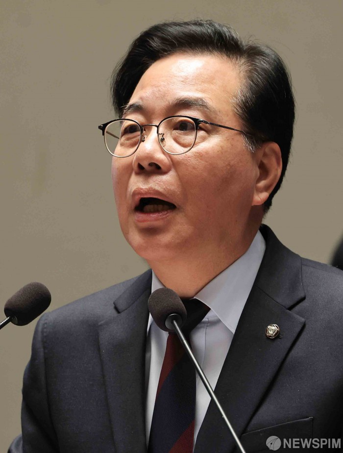 [서울=뉴스핌] 윤창빈 기자 = 송언석 국민의힘 원내대표가 15일 서울 여의도 국회에서 열린 의원총회에서 모두발언을 하고 있다. 2026.01.15 pangbin@newspim.com