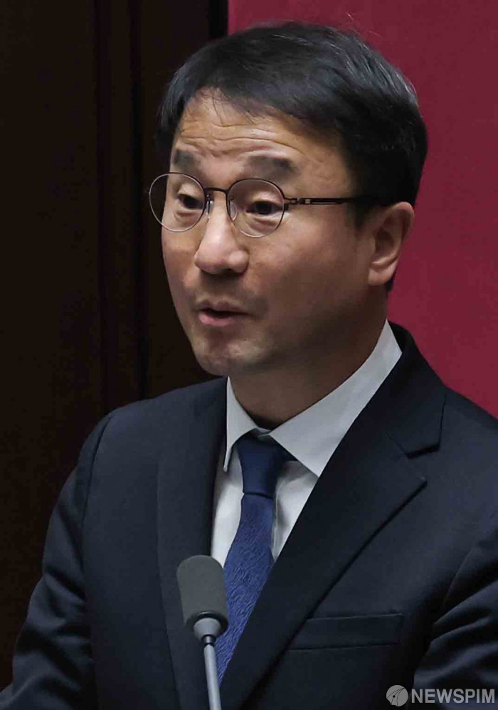 [서울=뉴스핌] 윤창빈 기자 = 국회 운영위원장으로 선출된 한병도 더불어민주당 의원이 15일 서울 여의도 국회에서 열린 본회의에서 당선 인사말을 하고 있다. 2026.01.15 pangbin@newspim.com