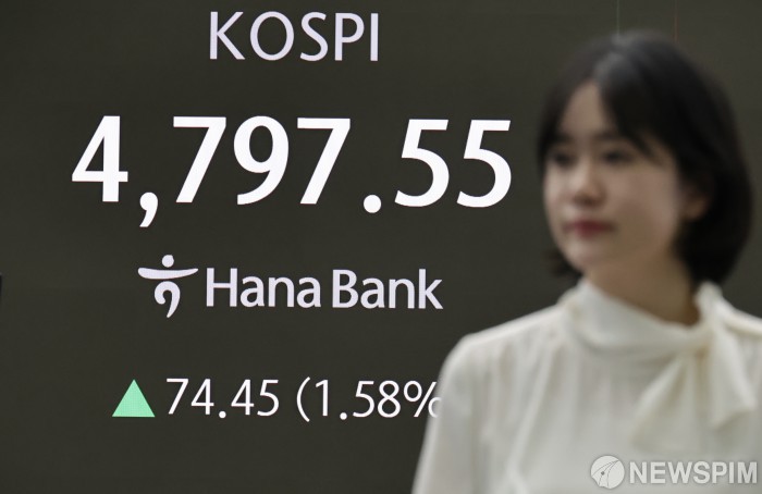 [서울=뉴스핌] 양윤모 기자 = 15일 오후 코스피가 전장 종가보다 74.45 포인트(1.58%) 상승하며 4797.55로, 코스닥은 8.98 포인트(0.95%) 상승한 951.16으로 장을 마감한 가운데, 서울 중구 하나은행본점 딜링룸에서 직원들이 업무를 보고 있다. 서울외환시장에서 달러/원 환율은 전장 대비 6.30원 하락한 1471.20원에 주간거래를 마감했다. 2026.01.15 yym58@newspim.com