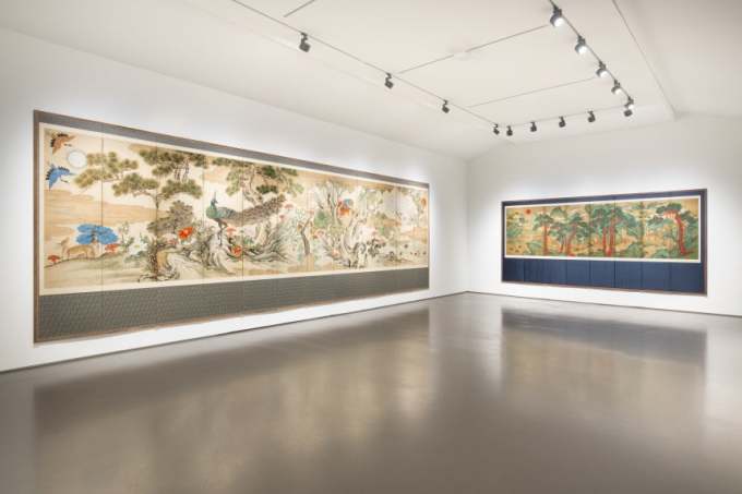본관에서는 한국의 전통민화와 궁중화 27점을 모은 '장엄과 창의: 한국 민화의 변주'를 선보인다. 왕실에 걸렸던 십장생도를 비롯해 사대부 가문에서 소장했을 법한 귀한 병풍, 그리고 질박하면서도 생명력 넘치는 민화까지 아우르며 조선 회화의 넓은 스펙트럼을 보여준다.