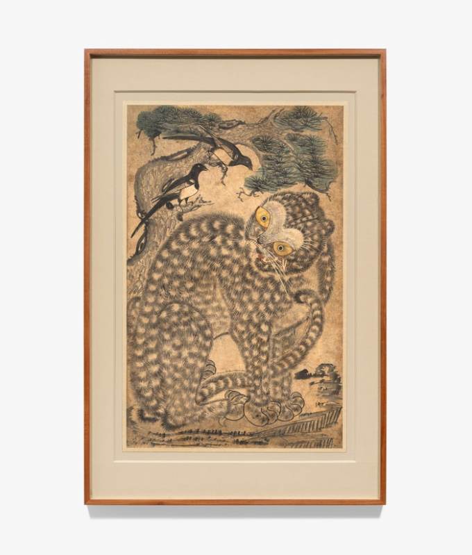 '케이팝 데몬 헌터스' 속 호랑이(더피)와 까치(서씨)의 원류로 K-컬처의 인기 아이콘이 된 '까치호랑이(호작도)'도 여러 점 출품돼 관심을 모은다. 본관 1층에 들어서면 가장 먼저 6점의 까치호랑이 그림이 관람객을 맞는다.