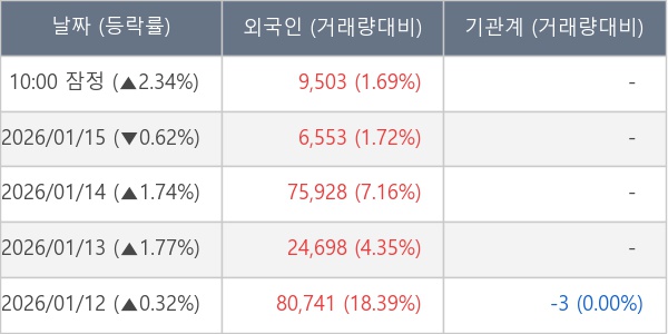 [표] 외국인ㆍ기관 순매매량 (단위 주)