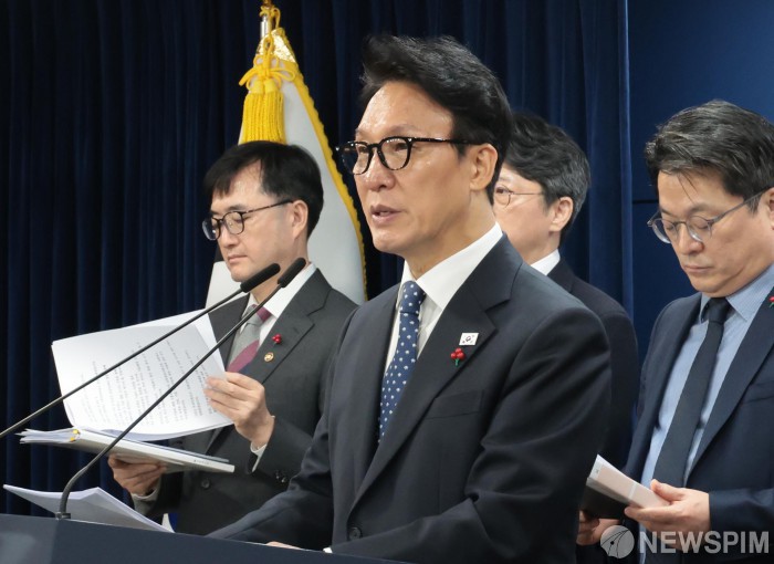 [서울=뉴스핌] 이길동 기자 = 김민석 국무총리가 16일 서울 종로구 정부서울청사에서 행정통합 인센티브와 관련해 브리핑을 하고 있다. 2026.01.16 gdlee@newspim.com