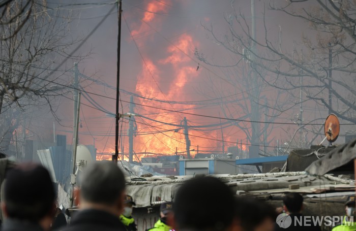 불기둥 솟는 개포동 구룡마을 화재 현장
