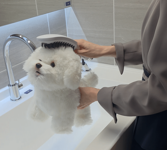 공용 욕실에는 하부 수납장을 없애고 반려동물 전용 세족대를 설치했으며, 반려동물 전용 샤워기를 통해 산책 후 발을 씻기거나 목욕을 시키기 편리하도록 했다. 하부 공간은 반려동물 드라이룸(건조기)을 놓을 수 있게 비워뒀다. 다만 현장 관계자는 "현재로서는 펫테리어 선택 시 조명 등 다른 유상 옵션과 교차 선택이 불가능해, 이 부분을 협의 중"이라고 설명했다.