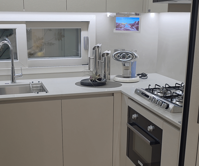 펫테리어 옵션을 선택하면 주방에는 반려동물의 안전사고를 방지하는 슬라이딩 도어(중문)가 설치된다. 바닥재는 미끄럼 방지 기능이 강화된 'LVT(Luxury Vinyl Tile)'가 적용돼 강아지의 슬개골 탈구 예방을 돕는다. 또한 벽면에는 일반 벽지보다 내구성이 3배 강한 '안티 스크래치' 벽지가 시공된다.