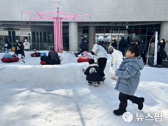 눈밭 놀이터의 백미는 단연 대형 눈썰매 슬로프다. 신장 120cm 이상의 이용객들이 방한 장갑을 착용한 채 튜브 썰매를 타고 시원하게 내려오는 모습은 보는 이들마저 시원하게 만들었다. 슬로프 하단에는 안전 요원들이 배치되어 아이들이 안전하게 멈출 수 있도록 도왔다.
