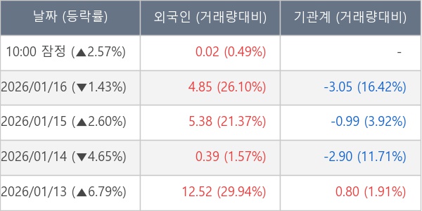 [표] 외국인ㆍ기관 순매매량 (단위 만주)