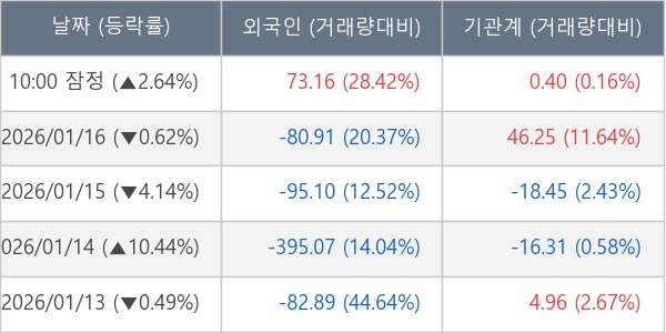 [표] 외국인ㆍ기관 순매매량 (단위 만주)