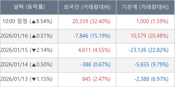 [장중수급포착] 티에스이, 외국인/기관 동시 순매수… 주가 +8.54%