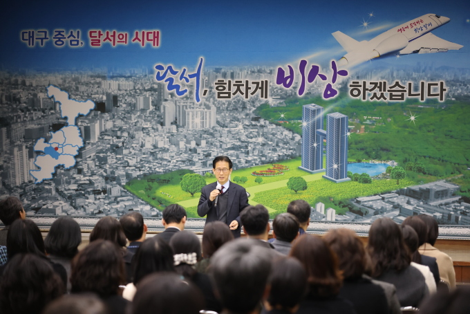 ▲ 1997년 제3회 지방고시에 합격하여 공직 생활을 시작한 이후 경제산업, 문화체육, 도시건설, 기획행정, 재난안전 등 대구시의 주요 분야에서 근무하며 지역과 함께 성장해 왔습니다. 대구시 체육진흥계장 시절 전국 최초의 시민프로축구단 대구FC를 창단했고, '2003년 유니버시아드 대회 이후 대구시가 개최해야 할 국제행사로 세계육상선수권대회를 유치해야 한다'는 내용의 보고서를 최초로 썼습니다.